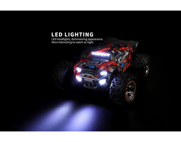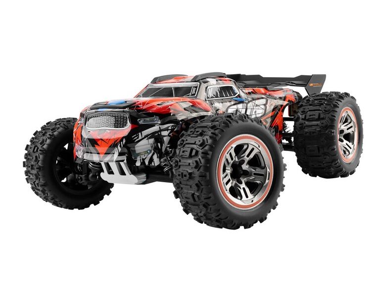 Der 7,4 Volt LiPo-Akku liefert die nötige Leistung für den kraftvollen Antrieb. Spitzengeschwindigkeiten von bis zu 60 km/h sind somit möglich. Der Truck ist wie sein Bruder, der DF06 (Nr.3122) mit allen nur erdenklichen Tuningteilen „out oft he box“ ausgestattet. Dämpfer mit Aluminiumteilen, Metall-Antriebswellen, Metall-CVD Kardans vorne, Aluminium Querlenkerhalterungen, Spezial-Servo-Saver, gekapseltes Getriebe sowie Kugellager lassen kaum Tuning-Wünsche mehr offen! In der mittels Schnellverschluß befestigten Karosserie ist eine LED Beleuchtung integriert, die Fahrten in der Nacht/ Dämmerung zum Highlight machen.