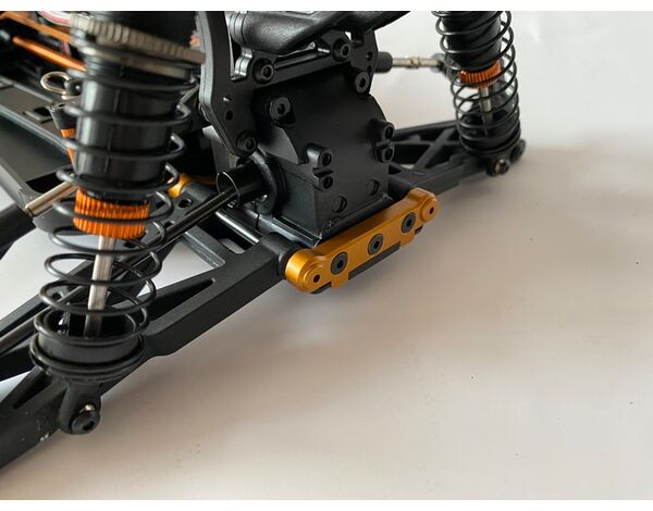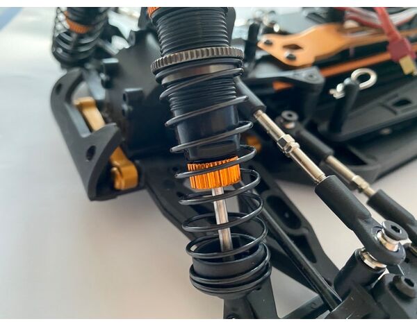 An den hochwertig verbauten Komponenten wie Alu-Querlenkerhalterungen, Kugellager, CVD-Antriebswellen (vorne), Öldruckstoßdämpfern mit Aluminium-Teilen, Stahl Motorritzel, Power-Lenkservo mit Metallgetriebe sowie dem gekapselten Getriebe wurde nichts verändert und bietet den bekannt hochwertigen Standard (Nerver change a running system…)! Tuningmöglichkeiten wie z. B. Alu-Radmitnehmer oder Stabilisatoren (vorne/hinten) sind optional erhältlich.