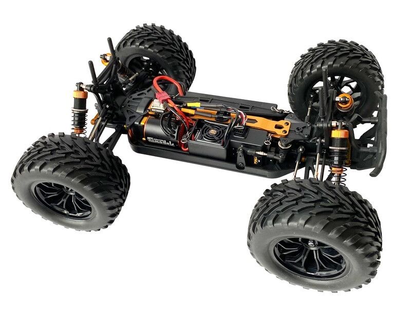 Der 4-WD brushless Truck im Maßstab 1:10 hat zu seinen Vorgängern ein Facelift erhalten, neue Karosserie, neues Design. Der kraftvolle 3100kv Brushless-Motor in Verbindung mit dem leistungsstarken WP-10BL50 Hobbywing Brushless-Regler mit 50 Ampere Leistung sowie einem 7,4 Volt LiPo Akku bringt ausreichend Power, um das Modell im Gelände zu bewegen. Rasante Drifts, Sprünge und Schotterfahrten mit bis zu 70 km/h Topspeed (im 3S LiPo-Betrieb möglich), dafür ist der FastTruck 5.1 gemacht!