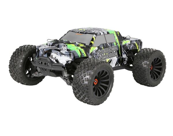 Hierzu zählen jetzt ein 60 Ampere Regler, 10 KG XXL-Metall-Getriebe Servo sowie eine Fernsteuerung, die eine Maximalgeschwindigkeit wählen lässt (100-75-50 %). Features wie 4WD Antrieb, robuste Differentiale, XXL-Öldruckstoßdämpfer, 17mm Radmitnehmer und ein Chassis mit sehr hohen Seitenteilen (somit kann weniger Schmutz in das Modell gelangen) sind bei unserem Modell als Standard anzusehen!