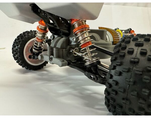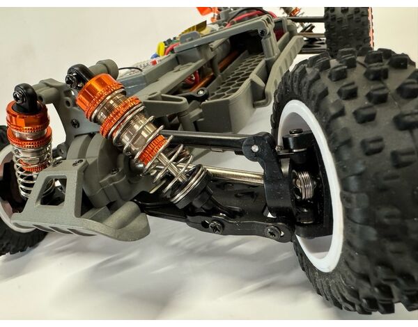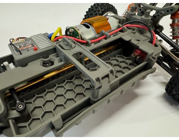 Der Buggy ist wie sein Bruder (Z-06) mit allen nur erdenklichen Tuningteilen „out oft he box“ ausgestattet. Aluminium-Öldruckstoßdämpfer, Metall-Antriebswellen, Metall-CVD Kardans vorne, Aluminium Querlenkerhalterungen und Frontrammer, Metall Rechts-/Links-Gewindestangen (Lenkung), Spezial-Servo-Saver, gekapseltes Getriebe sowie ein Wabenchassis (enorme Festigkeit und Verwindungssteifigkeit) lassen keine Tuning-Wünsche mehr offen! Der 7,4 Volt LiPo-Systemakku passt perfekt in die Halterung des Modells. Ein verpolen des Akkus beim Anschließen ist somit ausgeschlossen. Alternativ können natürlich andere Akkus (7,4 Volt LiPo Akkus) verbaut werden.