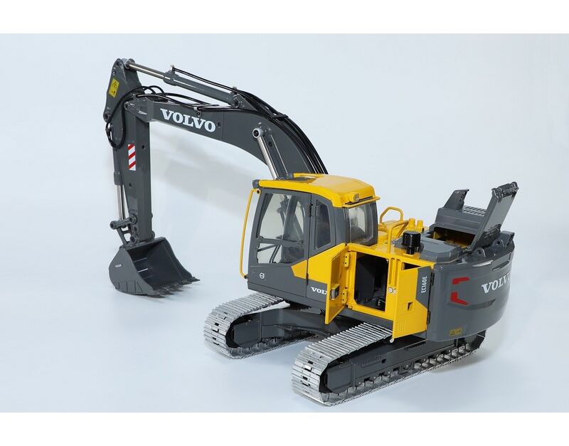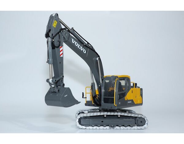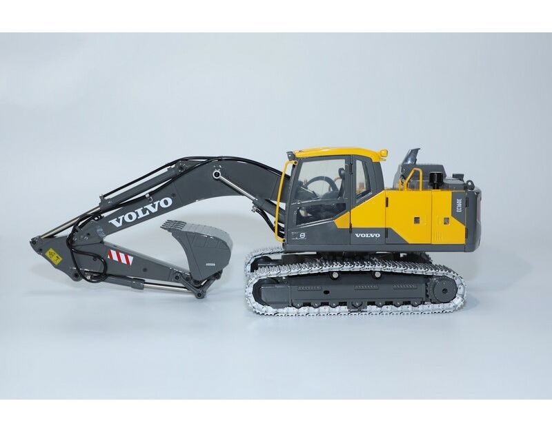 Das Modell im Maßstab 1:14 wurde mit höchster Präzision konstruiert und orientiert sich detailgetreu am Volvo EC160E, einem 16 Tonnen schweren Kettenbagger. Mit proportionalen Abmessungen von 61 × 20 × 22 cm und einer Ausleger- und Armverlängerung von 56 cm überzeugt dieses Modell durch eine absolut realistische Beweglichkeit und Leistungsfähigkeit.