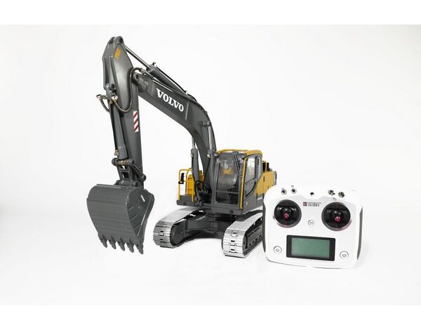 Das Modell im Maßstab 1:14 wurde mit höchster Präzision konstruiert und orientiert sich detailgetreu am Volvo EC160E, einem 16 Tonnen schweren Kettenbagger. Mit proportionalen Abmessungen von 61 × 20 × 22 cm und einer Ausleger- und Armverlängerung von 56 cm überzeugt dieses Modell durch eine absolut realistische Beweglichkeit und Leistungsfähigkeit.