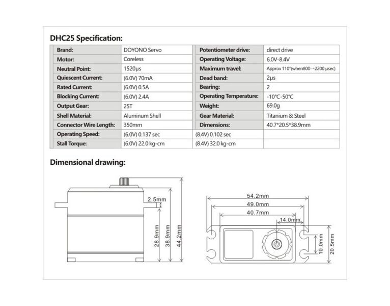 Doyono bietet hochwertige Servos zum kleinen Preis. Dieser leistungsstarke Hochspannungs-Servo mit Semi-Metal Gehäuse ist ideal für 1/8 und 1/10 Nitro Anwendungeny