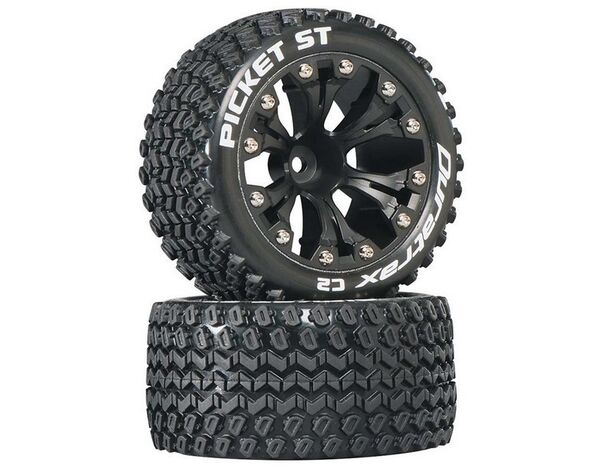 DTXC3550 DURATRAX Picket ST 2.8 2WD Mounted F/R 1/10 Monster Truck C2 Tires Black 12mm (2) 1/2 Offset