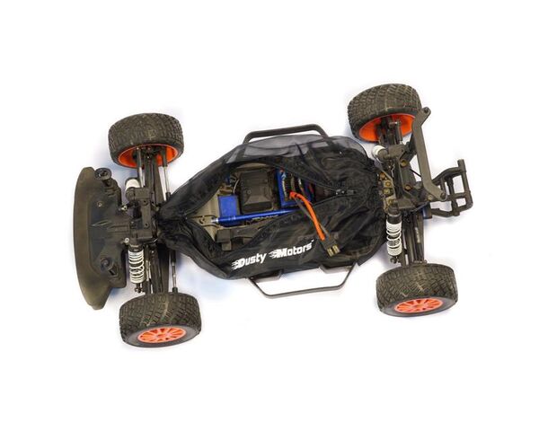 Hierbei handelt es sich um eine hochwertige, handgefertigte, staub- und spritzwassergeschützte Schutzabdeckung, die für unterschiedliche ferngesteuerte Modelle der nachstehenden Hersteller geeignet ist: HPI, Kyosho, Team Associated, LOSI, Tamiya, Traxxas, Thunder Tiger, Ofna, Tekno, Mugen, XRay, Axial u.a. Die Abdeckung ist mit einem Reißverschluss ausgestattet, wodurch der Zugang zum Innenleben des Modells ermöglicht wird: Einsetzen/Herausnehmen von Batterien und Ein-/Ausschalten des Modells, ohne dabei die Schutzabdeckung entfernen zu müssen. Während einer Pause nach dem Einsatz des Modells kann die Abdeckung mittels Reißverschluss geöffnet werden, um ESC und Motor eine schnellere Abkühlung zu ermöglichen. Die Schutzabdeckung ist aus hochwertigen Materialien gefertigt. Deshalb ist sie stabil, beständig und wirkungsvoll. Die Freifläche des Materials open beträgt mehr als 50% der Gesamtoberfläche der Abdeckung und gewährleistet somit einen guten Luftstrom, um die Elektronik des Modells kühl zu halten.
