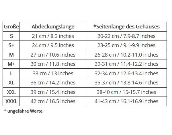 Größe Abdeckungslänge *Seitenlänge des Gehäuses