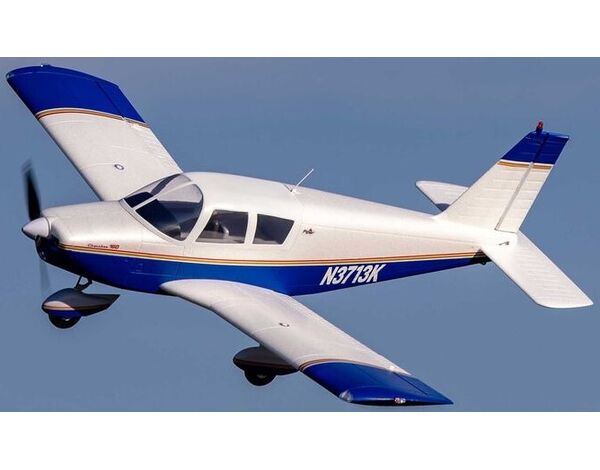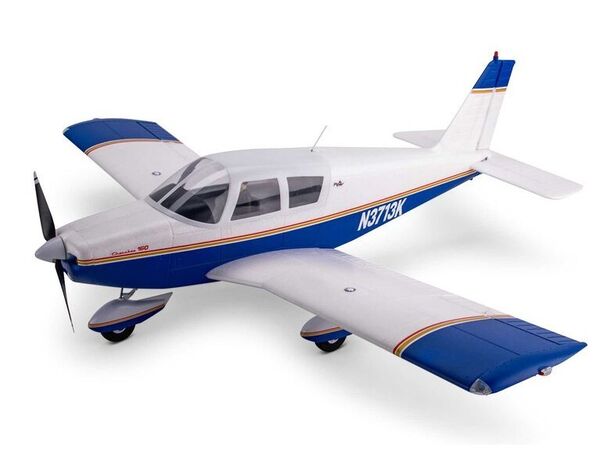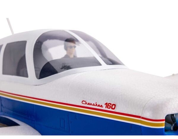 This updated and upgraded E-flite Cherokee 1.3m celebrates the classic design of the legendary full-scale PA-28 with an accurate outline, a long list of scale details, modern-day convenience features and technologies, plus fantastic power and flight performance that makes flying exciting and fun. An abundance of scale details including molded-in panel lines, rivets, corrugated control surfaces, factory-installed LED lights, and more highlight the authentic appearance. The shock-absorbing nose strut features an improved steering arm and mounting design for easier maintenance, while the oversized wheels make it possible to fly from a variety of paved, dirt, and even some grass surfaces. Plug-in wing panels are equipped with convenient hands-free servo connections and include operational slotted flaps for shorter takeoffs and landings plus improved slow-flight handling. An extremely large top hatch featuring a pilot figure – and now including a plastic instrument panel cover to eliminate “gatoring” – offers easy access to the electronics and the battery mounting area with plenty of space to fit a 3S or 4S 2200–4000mAh battery, while the high-power brushless motor and 70-amp Smart Lite ESC deliver better-than-scale power. The power system has also been optimized with a smaller diameter propeller that offers better ground clearance plus improved efficiency and performance. Best of all, no glue is required for assembly of the lightweight, composite-reinforced EPO airframe so you can be flying in less time than it takes to charge a battery! It all adds up to deliver a scale marvel that offers incredible handling and fantastic flight performance for shooting smooth touch and goes, rock-solid low and high-speed cruising, and even for performing aggressive aerobatics in a model that’s perfect for intermediate to experienced pilots.