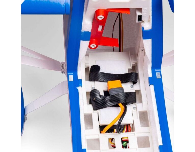 Die E-flite Decathlon RJG 1.2m ist eines der leistungsfähigsten und handlichsten Modelle des legendären Kunstflugtrainers! Es ist ein Nachbau der Decathlon, die RJ Gritter (RJG) auf Flugshows in den Vereinigten Staaten fliegt, und weist ein klassisches, aber modernisiertes Farbschema in Rot, Weiß und Blau auf. Zusätzlich ist eine Vielzahl an Scale Details, darunter funktionale LED-Lande- und Navigationsbeleuchtung, Radschuhe und Tragflächenstreben. Der einteilige Flügel lässt sich dank selbstverbindender Servostecker und Rändelschrauben einfach montieren und demontieren. Obwohl das Modell flugfertig aufgebaut eine handliche Größe hat und sich leicht lagern und transportieren lässt, lassen sich die Streben ein- und ausrasten, ohne dass Werkzeug erforderlich ist! Digital Servos mit Metallgetriebe und Schubstangen mit Kugelköpfen sorgen für eine präzise und zuverlässige Anlenkung für klassischen und aggressiven Kunstflug. Das 3S und 4S kompatible Antriebssystem verfügt über einen 45A Spektrum™ Avian™ Smart Lite-Regler und die BNF® Basic Version ist mit einem AR631 Empfänger ausgestattet, um Echtzeit-Telemetriedaten zusammen mit AS3X® und optionalem SAFE® Select zu liefern, inklusive Schubumkehr. All diese Details und Funktionen ergeben zusammen ein sehr praktisches und äußerst leistungsfähiges Modell, das eine großartige Wahl für fortgeschrittene und erfahrene Piloten ist!