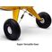 Luftgefüllte Gummireifen mit Beadlock-Felgen sowie ein robustes, stoßdämpfendes Fahrwerk