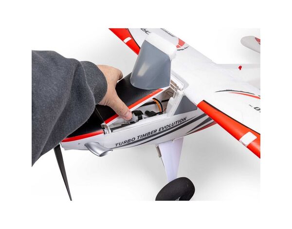 Die Turbo Timber® Evolution Tragfläche wurde mit speziellen Features wie heruntergezogenen Randbögen und funktionalen Spaltklappen versehen und bietet zusätzlich eine Aufnahme für die optionalen Vorflügel (im Lieferumfang enthalten). Damit verbessert sich die Langsamflug- und STOL-Leistung erheblich und diese Eigenschaften, zusammen mit dem leichten Design und dem Hochleistungs-Brushless-Motor, ermöglichen es innerhalb von einem halben Meter in die Luft zu springen bzw. im Schwebeflug beinahe senkrecht zu landen.