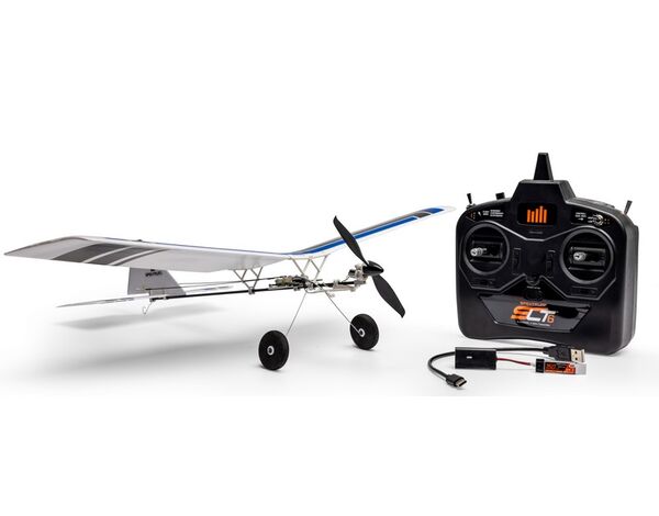 Die Ready-to-Fly (RTF) Version enthält einen 6-Kanal-Sender mit Spektrum SLT 2,4GHz Technologie und alles andere, was Du zum Fliegen brauchst, einschließlich AA-Batterien für den Sender, einen wiederaufladbaren 1S 150mAh Akku für das Flugzeug und ein USB-Ladegerät. Das heißt, Du musst nichts extra kaufen, um fliegen zu können! Der mitgelieferte Sender kann auch mit anderen Ultra-Micro/UMX (Ultra Micro eXtreme)-Flugzeugen verwendet werden, die mit Dual-Protokoll-Empfängern mit Spektrum SLT FHSS Technologie ausgestattet sind. Außerdem kann er mit der mitgelieferten Testversion des Modellflugsimulators RealFlight Trainer Edition und der „Vollversion“ RealFlight Evolution verwendet werden!