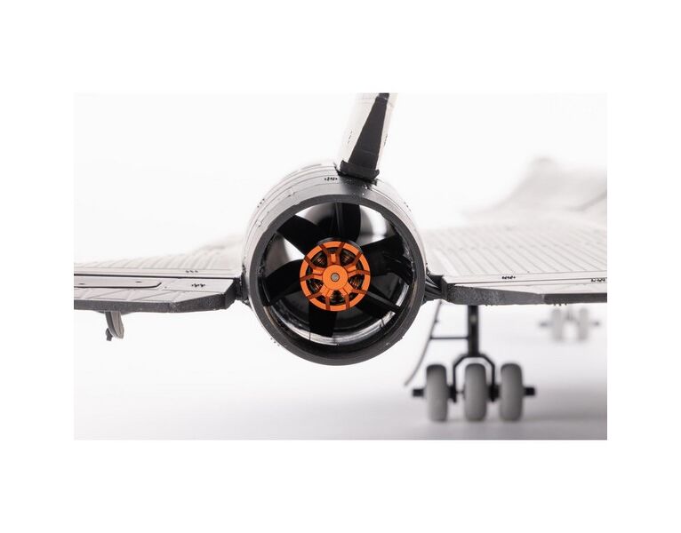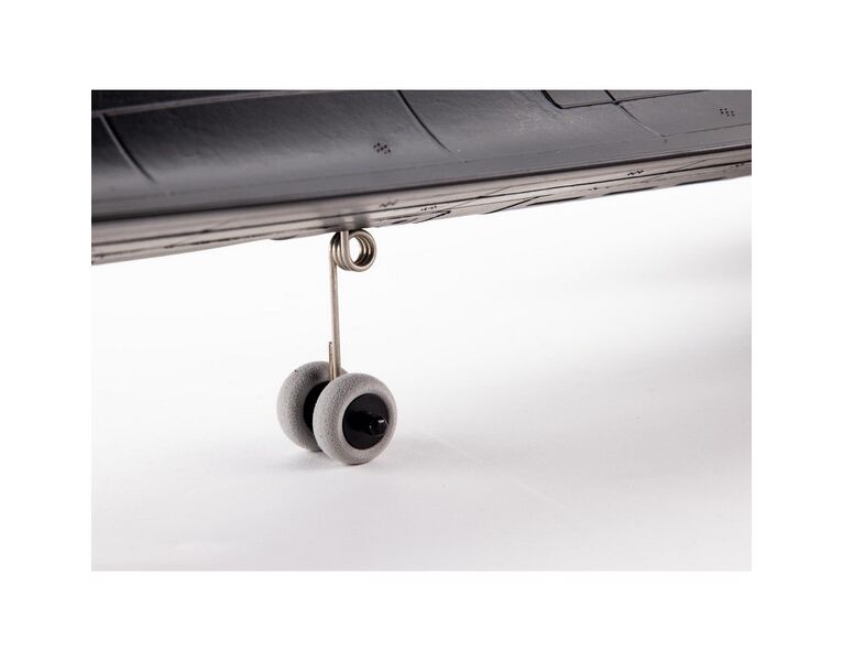 Das optional verwendbare starre Fahrwerk mit lenkbarem Bugfahrwerk erleichtert das Rollen, Starten und Landen auf glatten Oberflächen. Du kannst das Fahrwerk auch demontiert lassen, um beim Fliegen von Gras mehr Fluggeschwindigkeit und mehr vertikale Steigleistung zu erzielen. Das Beste daran ist, dass das Modell fertig und fast flugbereit direkt nach dem Auspacken geliefert wird, um ein authentisches SR-71-Flugerlebnis zu bieten, das du sonst nirgendwo bekommen kannst!
