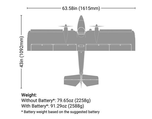 Der E-flite® Twin Timber 1,6 m ist nicht „nur ein weiterer Timber" – er bietet das gleiche einfache Handling und die gleichen STOL-Eigenschaften, für die Timber-Modelle bekannt sind - zusammen mit zusätzlichen Vorteilen wie höhere Leistung und einzigartige Fähigkeiten aufgrund seines Zweimot-Setups!
