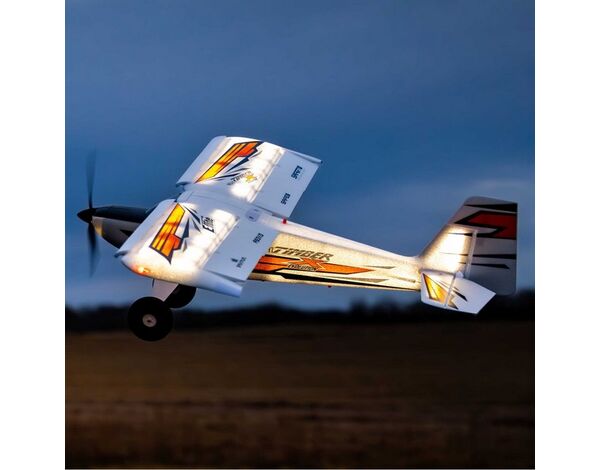 Der E-Flite Timber X 1.2m läutete eine neue Ära von STOL-Modellen mit 3D- und Kunstflugeigenschaften ein. Basierend auf den äußerst beliebten Timber 1.5m-Modellen, aber mit einem anderen Tragflächendesign und übergroßen Rudern, bot er ein noch vielseitigeres Flugspektrum, das von entspannten Platzrunden bis zum aggressiven 3D Kunstflug alles ermöglichte. Zu der standardmäßigen LED-Lande-, Navigations- und Strobe-Beleuchtung verfügt der Night Timber X Evolution 1.2m über integrierte, gut sichtbare LEDs in der gesamten Flugzeugzelle, die es ermöglichen, praktisch zu jeder Tages- und Nachtzeit zu fliegen! Er bietet außerdem viele Updates und Upgrades im Vergleich zum ursprünglichen Night Timber X, darunter ein oberer Rumpfdeckel für einen schnelleren, einfacheren Akkuwechsel sowie zusammengefasste Steckverbindungen für eine einfachere Tragflächenmontage. Robustere Fahrwerksaufnahmen sowie verstärkte Fahrwerksfedern ähnlich denen des Twin Timber 1.6m verbessern die Haltbarkeit und STOL-Fähigkeit beim Fliegen von unebenem Gelände.