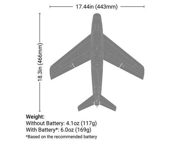 Die UMX F-86 Sabre wird zu 100 % werkseitig montiert geliefert und ist sofort flugbereit! Sie ist mit der branchenführenden Spektrum 2,4-GHz-Technologie ausgestattet, die mit deinem 5+ Kanal DSMX/DSM2 Sender gebunden werden kann, sodass du innerhalb weniger Minuten nach dem Öffnen der Box fliegen kannst.