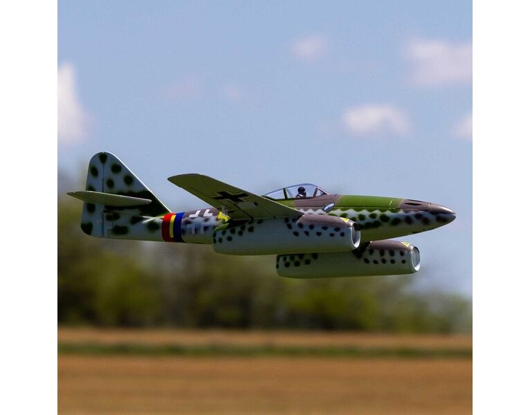 Die von Messerschmitt entworfene und entwickelte Me 262 wurde ab 1939 als Projekt 1065 zum ersten einsatzfähigen Düsenjäger der Welt. Sie wurde 1944 erstmals in Dienst gestellt und obwohl sie aufgrund ihrer revolutionären Konstruktion schneller war als alle kolbengetriebenen Jagdflugzeuge der damaligen Zeit, war ihre Wirkung aufgrund der relativ geringen verfügbaren Stückzahl und ihres späten Kriegseintritts begrenzt. Jetzt ermöglicht die E-flite® UMX™ Me 262 Twin 30mm EDF mehr RC-Piloten einen Nachbau dieses geschichtsträchtigen Flugzeugs zu besitzen und zu fliegen. Es ist eines der bisher einzigartigsten Ultra-Micro-Modelle und bietet dank der zwei 3S-kompatiblen Antriebssysteme eine hervorragende Flugleistung!