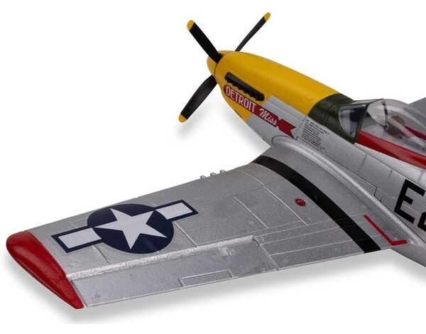 Am 7. Oktober 1944 traf Urban L. Drew – auch bekannt als „Ben“ Drew – als einer von nur drei USAAF Piloten während eines Kampfeinsatzes über feindlichem Gebiet auf den damals neuen Düsenjägertyp Messerschmitt Me 262. Anschließend war er der erste und einzige alliierte Pilot, der zwei dieser düsengetriebenen Flugzeuge in seiner P-51D „Detroit Miss“ abschoss. Die E-flite® UMX™ P-51D Mustang ist ein Nachbau dieses historischen Flugzeugs, mit einer Vielzahl Scale-Details, beeindruckendem Handling und herausragender Leistung. Das exklusive Spektrum™ AS3X® und die optional einsetzbare SAFE® Select-Technologie sowie das 2S- und 3S-kompatible Antriebssystem sorgen für ein unvergleichliches Ultra-Micro Mustang Flugerlebnis.