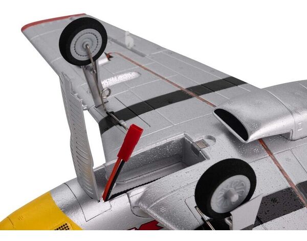 Die P-51D Mustang gilt weltweit als eines der legendärsten Kampfflugzeug aller Zeiten! Ihre einzigartige Konstruktion führte dazu, dass sie unter allen im Zweiten Weltkrieg geflogenen Jagdflugzeugen zu den leistungsfähigsten zählte. Die „Detroit Miss“ ist eine geschichtsträchtige P-51D Mustang, die von Urban „Ben“ Drew geflogen wurde und mit der er 1944 als erster USAAF Pilot zwei düsengetriebene Messerschmitt Me 262 Jagdflugzeuge abschoss. Die E-flite UMX P-51D Mustang ist ein Ultra-Micro-Modell dieses berühmten Flugzeugs, das eine Warbird-Version der beliebten UMX P-51D Voodoo ist. Sie ist mit fachmännisch abgestimmten AS3X- und der optional einsetzbaren SAFE Select-Technologie ausgestattet, ist mit 2S- und 3S-Akkus kompatibel und bietet Echtzeit-Akkuspannungstelemetrie für kompatible Sender. Aufgrund ihrer ultrakleinen Größe kann die UMX P-51 an mehr Orten und auf kleineren Flächen geflogen werden, als größere Modelle! Das feste Fahrwerk mit lenkbarem Spornrad erleichtert das Rollen, Starten und Landen auf glatten Oberflächen. Du kannst das Fahrwerk auch demontiert lassen, das Modell aus der Hand starten und so mehr Fluggeschwindigkeit und vertikale Steigleistung erreichen. Es ist der bisher erschwinglichste und gutmütigste Nachbau einer P-51D Mustang!