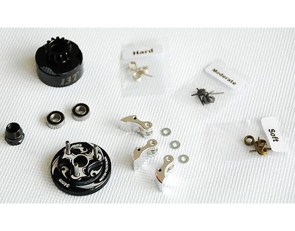 E64-BUB2113 Alpha Plus Alpha Clutch Combo Set (13T Vented Clutch Bell +Bearing 5*10 ( 2pcs) + 34 mm Flywheel(Black) + 3pc Type cluth shoe (Alum) with 3 different springs and washers + Clutch Nut