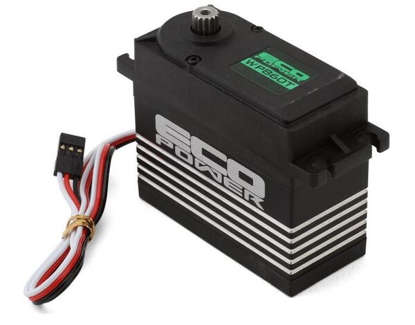 EcoPower WP860T 1/5 Scale Waterproof Metal Gear Servo. This servo is a powerhouse of performance and durability designed for 1/5 and 1/6 large scale chassis applications. The WP860T waterproof servo is engineered to withstand immersion up to 1 meter, ensuring reliable operation even in wet conditions. With an impressive 667 oz-in of torque at 6.0V and a remarkable 861 oz-in at 8.4V, this servo is ready to handle the most demanding tasks. Thanks to its high-voltage circuitry, it delivers consistent and precise responses. The inclusion of full steel gears further guarantees maximum durability and reliability, making it the ideal choice for large-scale RC enthusiasts seeking top-tier performance and resilience.