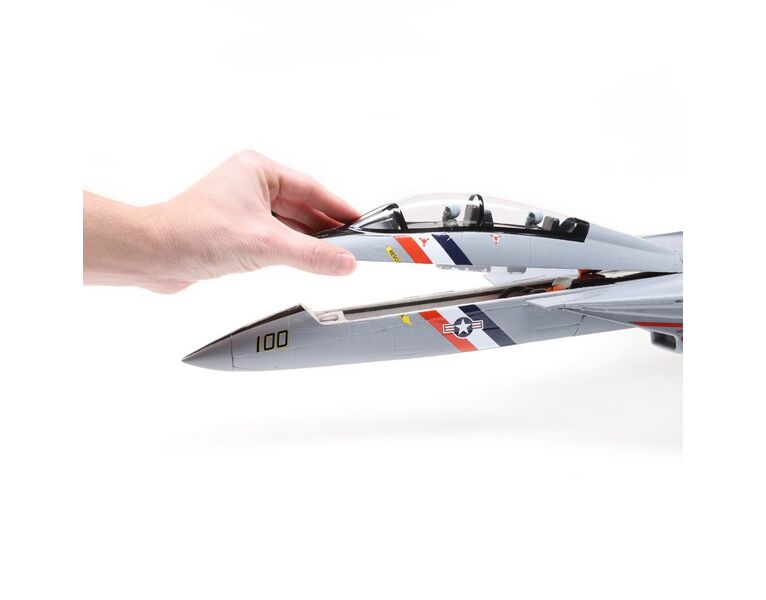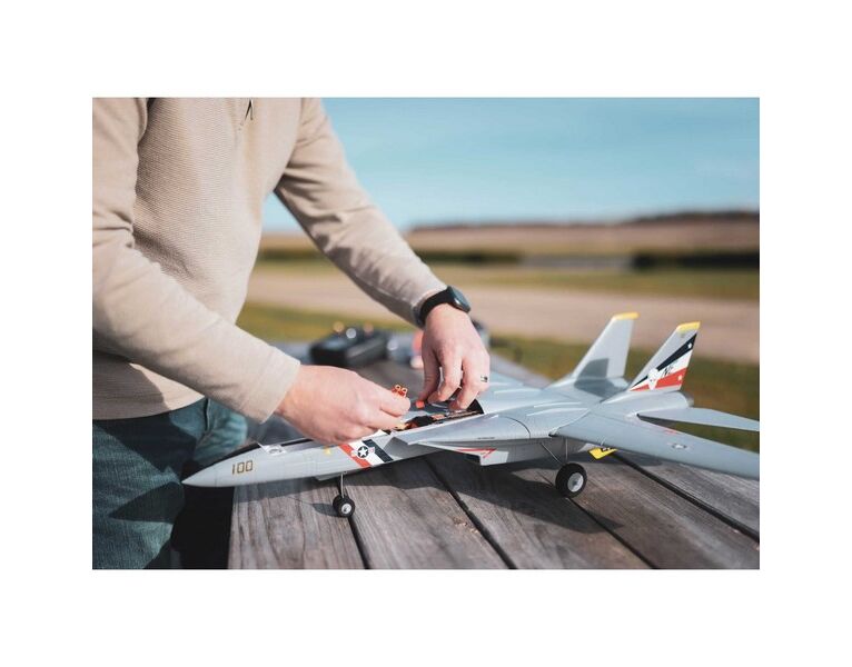 Viele RC-Piloten haben immer davon geträumt, eines Tages eine F-14 zu fliegen - und die E-flite® F-14 Tomcat Twin 40mm EDF lässt diesen Traum wahr werden! Sie wird fertig vormontiert und fast sofort einsatzbereit geliefert, einschließlich eines werkseitig installierten Empfängers mit exklusiver Spektrum™ AS3X® und optionaler SAFE® Select-Technologie. Das Modell muss daher nur noch mit deinem 6+ Kanal DSMX®/DSM2® Sender gebunden werden. Ist dein Sender mit der Spektrum AirWare™ ausgestattet, dann erhältst du zusätzlich Echtzeit-Telemetriedaten wie Akkuspannung, Strom, Motordrehzahl und mehr.