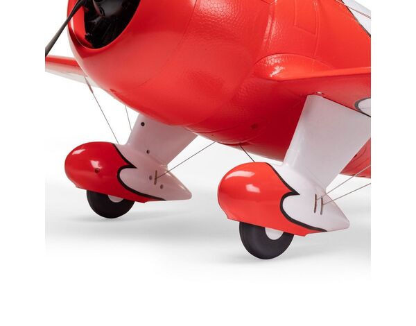 Das Modell besticht durch eine authentische Silhouette und zahlreiche Scale-Details, darunter eingearbeitete Panel-Lines, einen nachgebildeten Sternmotor, Spannseile und eine Pilotenfigur. Zu den funktionalen Features gehören Stoßdämpfer und Räder, die das Landen erleichtern, sowie ein lenkbares Spornrad. Die einteilige Tragfläche verfügt über werkzeuglose Verbindungen, und dank der kompakten Größe der Gee Bee 1.0m lässt sie sich problemlos lagern und transportieren, ohne dass eine Demontage erforderlich ist. Die werkseitig installierten digitalen Servos mit Metallgetriebe sorgen für präzise und zuverlässige Steuerung bei jeder Geschwindigkeit. Das Antriebssystem umfasst einen Spektrum™ Outrunner-Motor und einen Avian™ 70-Ampere Smart Lite Regler, die mit gängigen 4S 3200-5000mAh Akkus kompatibel sind.