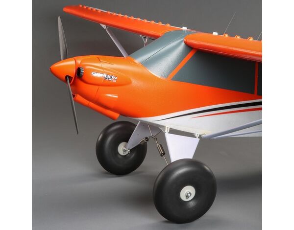 The new articulated and shock-absorbing landing gear, which is equipped with even larger oversized tundra-style wheels with softer tires, offers better ground handling that easily soaks up the bumps of rough surfaces. An improved mounting design for the main gear makes it stronger than before, and fully-molded top and bottom landing gear covers deliver a more scale-like appearance.