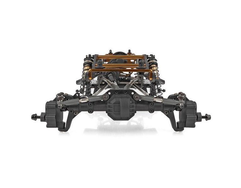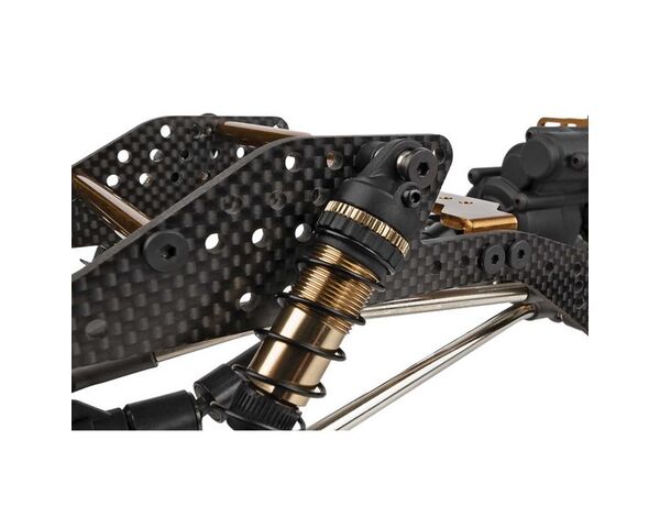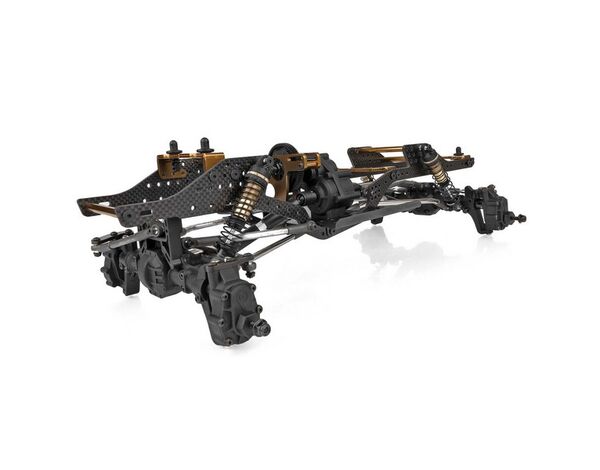 Dieses Kit ist für den ernsthaften RC Crawler entwickelt worden und ist vollgepackt mit Features, die dich durch jedes Gate bringen werden. Das leichte Flat-Rail-Chassis aus Kohlefaser, das von Aluminiumstreben gehalten wird, ist stabil und dennoch leicht genug, um den Schwerpunkt niedrig zu halten. Mit einer Vielzahl von Dämpfer- und Aufhängungspositionen gibt es unendlich viele Möglichkeiten, das Fahrwerk abzustimmen.