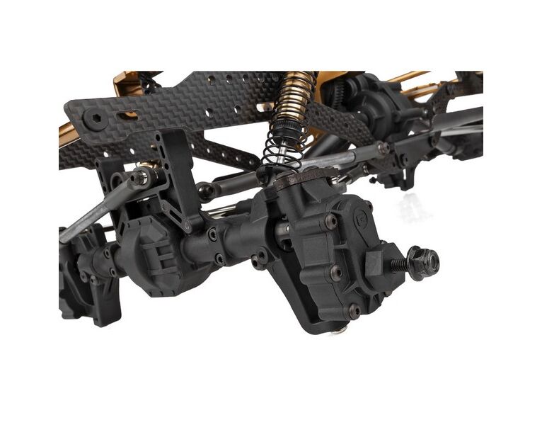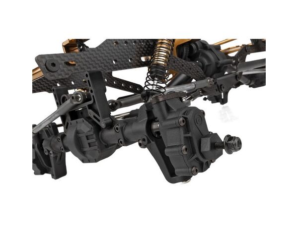 Wenn es um Rock Crawling geht, ist die Bodenfreiheit entscheidend. Deshalb enthält der Enduro Comp Fox Wettbewerbs-Rockcrawler-Kit unsere brandneuen Portalachsen mit hoher Bodenfreiheit. Mit fast einem Zoll mehr Bodenfreiheit in der Mitte der Achse im Vergleich zu herkömmlichen Starrachsen ist das Überwinden schwieriger Hindernisse ein Kinderspiel. Um das enorme Drehmoment der Portalachsen zu bewältigen, haben wir nicht nur durchgängig Metallzahnräder verwendet, sondern auch sechs Schrauben, um die Portalgetriebe zu befestigen. So viele Schrauben sorgen für ein stabileres Portalgehäuse und verringern die Gefahr, dass sich die Zahnräder unter schwerer Last lösen.