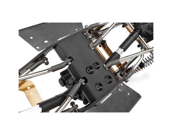 Das gefräste Kohlefaser-Flat-Rail-Chassis ist zusammen mit den Aluminium-Chassisstreben leicht, steif und stabil und bietet zahlreiche Optionen für die Fahrwerksabstimmung.