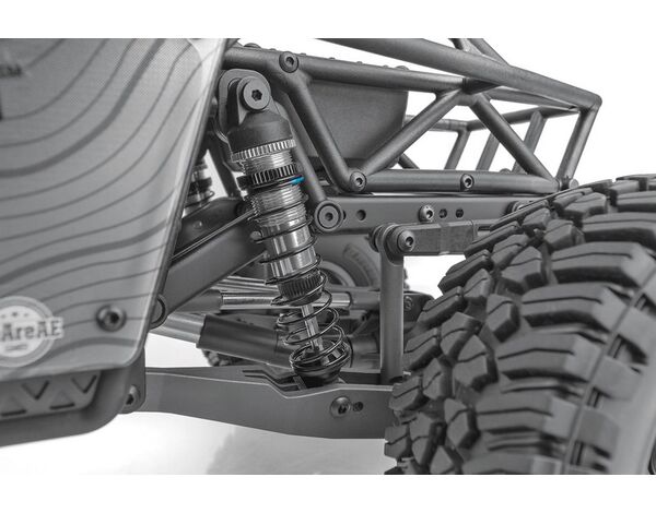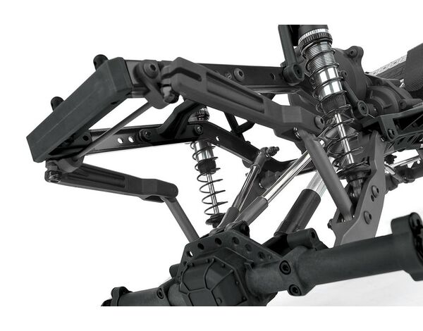 Was zeichnet den Enduro Ecto Trail Truck aus? Die Gatekeeper Suspension (GKS™) Radaufhängung! Bei diesem Aufhängungspaket werden Längslenker verwendet, an denen die Stoßdämpfer weiter vorne montiert werden, wodurch sich mehr Spielraum bei der Stoßdämpferabstimmung ergibt und eine bessere Gewichtsverteilung erreicht wird. In Kombination mit einem Stabilisator kann das Fahrwerk durch Verwendung dieser Längslenker beim Bezwingen der Felsen gleichmäßiger arbeiten, was für ein stabiles Fahrverhalten sorgt. Der Panhardstab wird mit einem einstellbaren Aluminiumhalter fest am Leiterrahmen montiert, um die Baugruppe zu versteifen und damit die Zuverlässigkeit und das Ansprechverhalten der Lenkung des Enduro Ecto zu verbessern. Unsere Dämpferbefestigungseinsätze bieten mehrere Montagemöglichkeiten, wodurch das Fahrwerk exakt an die jeweiligen Verhältnisse angepasst werden können, sei es durch Verschieben der Dämpfer nach oben, unten, vorn oder hinten.
