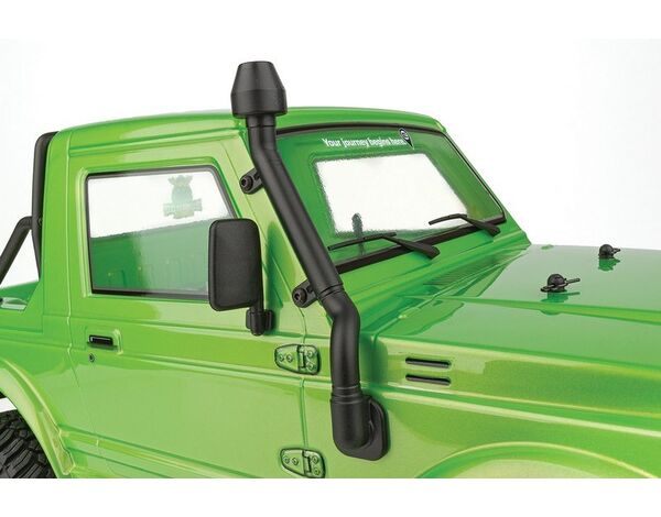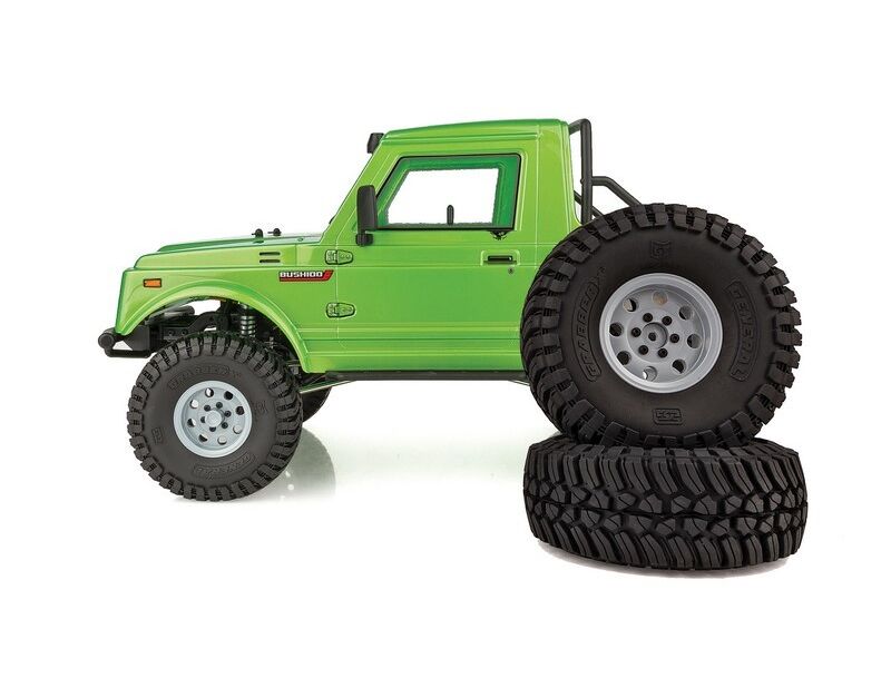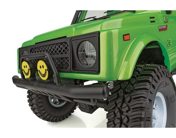Die einteilige Polykarbonat-Karosserie ist vorlackiert, hat transparente Scheiben und wird mit einem detaillierten Dekorbogen und zusätzlichen Aufklebern geliefert, mit denen der Bushido weiter personalisiert werden kann. Für ein besonders vorbildgetreues Aussehen auf dem Trail sorgen Außenspiegel, Kühlergrill, Scheibenwischer, Ansaugschnorchel, Stoßfänger und Überrollbügel aus Spritzguss.