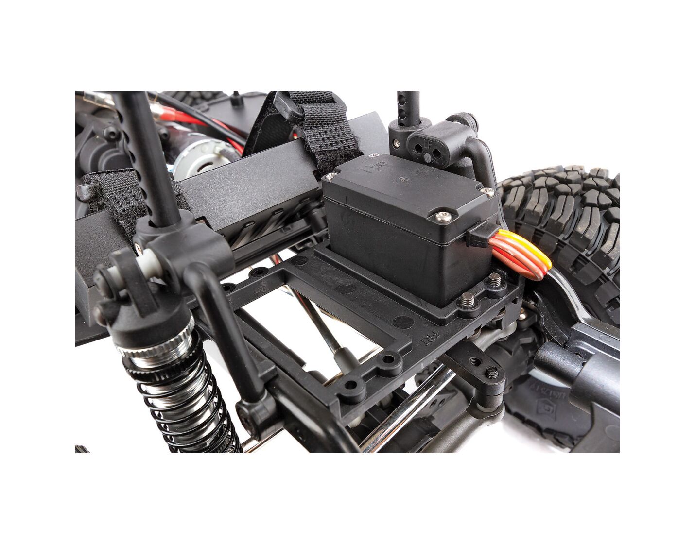 Integrierte Halterung für Servowinde: Durch die Montage der Servowinde direkt auf dem Chassis wird bei einem Crawler die stärkst mögliche und zuverlässigste Verbindung gewährleistet. Durch die Position neben dem Lenkservo wird eine ausgewogene Gewichtsverteilung erreicht.