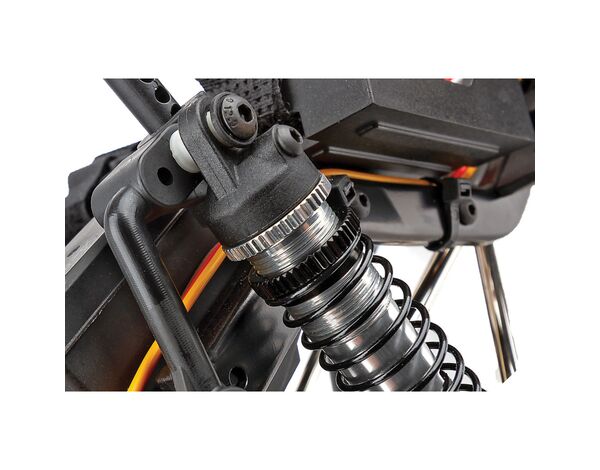 Gewindedämpfer aus Aluminium: Die flüssigkeitsgefüllten Gewindedämpfer aus Aluminium halten das Fahrzeug auf dem Trail sicher in der Spur und das Öl auch im unwegsamsten Gelände im Innern.