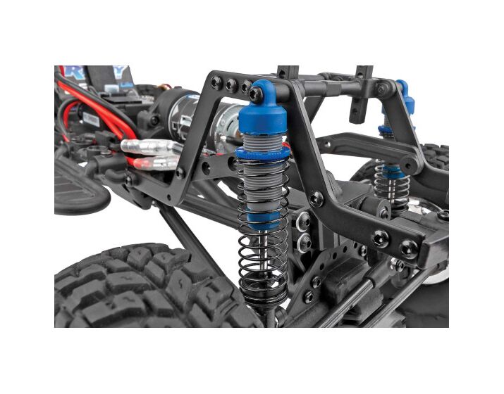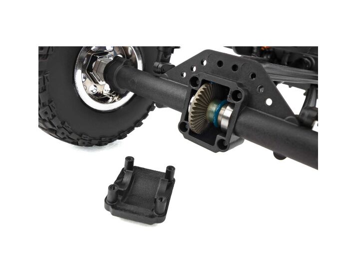 Die 4-Lenker-Aufhängung mit Metallgelenken vorne und hinten ermöglicht den Einsatz einer Servo On Axle (SOA) Lenkung. In Verbindung mit den Lenkstangen und Lenkkugeln aus Metall ermöglicht dies eine präzise und direkte Kontrolle über das härteste Gelände.