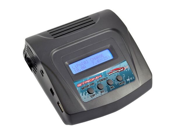 Etronix has upgraded its best selling PowerPal charger with the latest 3.0 version. Same reliable charging for all your battery charging needs, the 3.0 has been updated with the inclusion of a 2.1A USB charge sock-et, a DJI battery charge program and a useful servo testing function.
