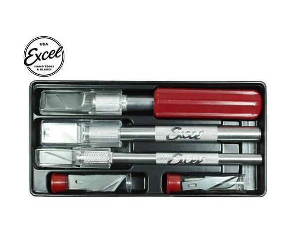 44082 EXCEL Tools - Knife Set - Hobby Set - Plastic Tray - includes 3 knives, and 13 assorted blades