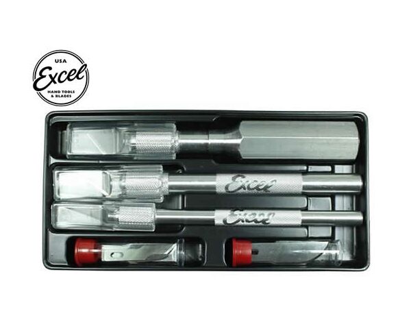 44083 EXCEL Tools - Knife Set - Craftsman Set - Plastic Tray - includes 3 knives, and 13 assorted blades