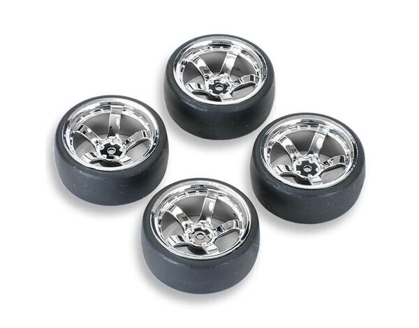 FASTRAX 1/10 (4) DRIFT D1 TYRE w/9MM 5-SPOKE WHEEL- CHROME