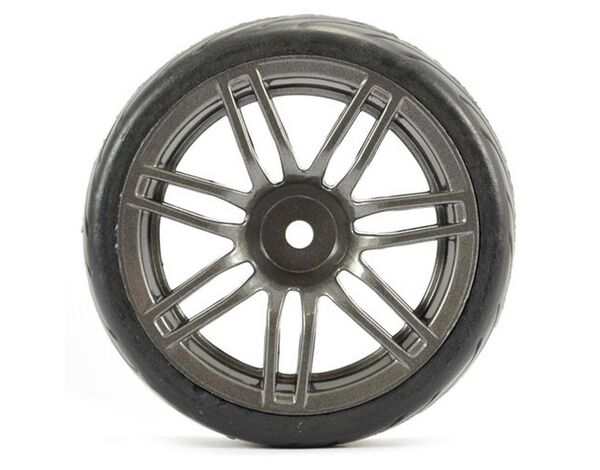 FASTRAX 1/10 STREET/TREAD TYRE 14SP GUN METAL WHEEL