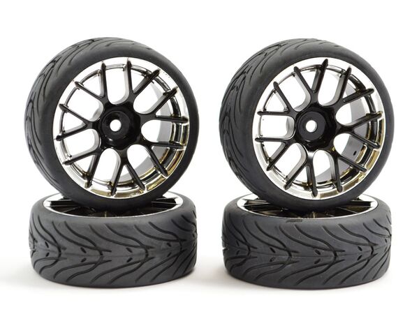 FASTRAX 1/10 STREET/TREAD TYRE 14SP BLACK/CHROME WHEEL