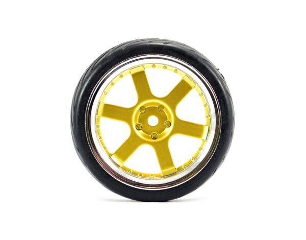 FASTRAX 1/10 STREET/TREAD TYRE 6-SPOKE GOLD/CHROME WHEEL