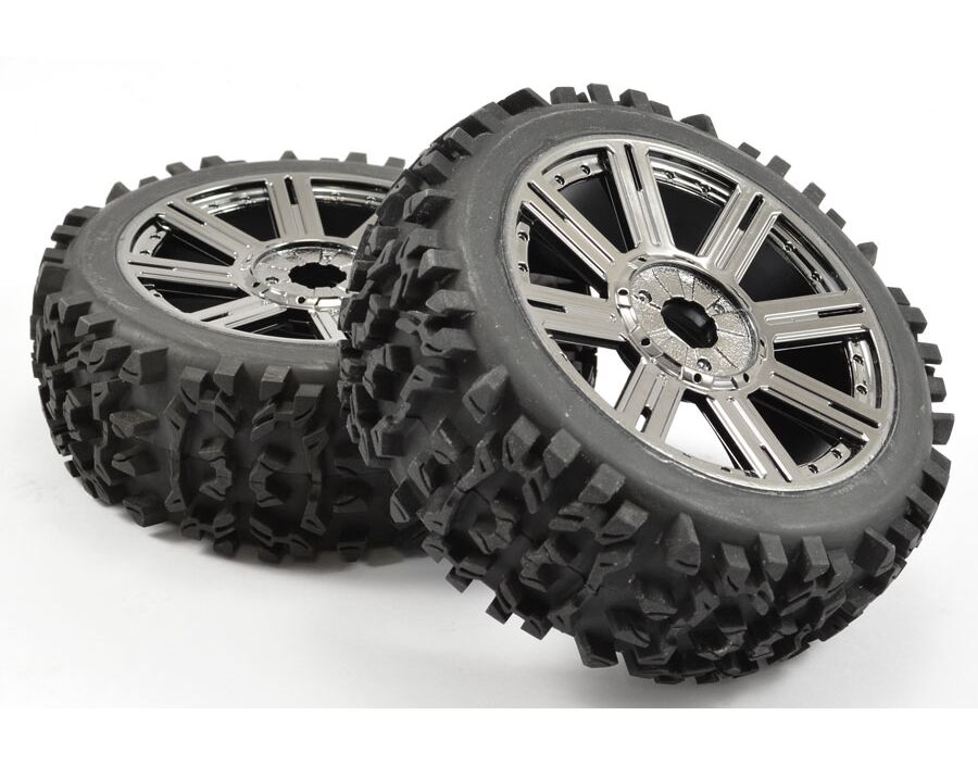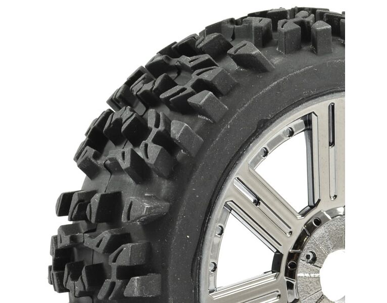 Fastrax Reifen - 1/8 Buggy - montiert auf Felgen - 17mm Hex - Maze Block Mounted On 8-spoke Black Chrome (Pair) (2 Stk.)