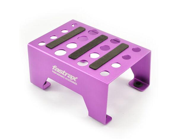 The Fastrax car stand is perfect for performing maintenance on your RC vehicle. The rubber feet hold the stand in place allowing you to work on your 1/10th or 1/8th car while the magnetic side strip can safely hold tools or screws so they are always to hand.
