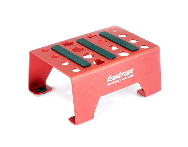 The Fastrax car stand is perfect for performing maintenance on your RC vehicle. The rubber feet hold the stand in place allowing you to work on your 1/10th or 1/8th car while the magnetic side strip can safely hold tools or screws so they are always to hand.