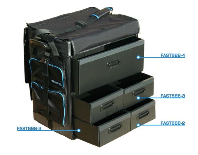 Corrugated plastic storage boxes keep your stuff secure and resist tearing and warping under the most extreme conditions. Each storage box includes an injection molded plastic handle insert and injection molded leading edge insert for easy sliding in and out of each box. Additional storage is found throughout the bag. Up top there's a unique insert that is designed for storing your tools during transportation. It can also be removed when wanting to work on your vehicle. Added storage on the front, back and side of the bag are perfect for decal storage, note pads, and other items that need special attention.