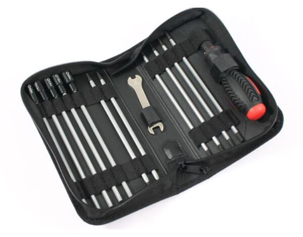 If you are after an all encompassing tool set for your r/c vehicle then Fastrax has introduced the perfect cost effective solution with their new 19-in-1 Tool bag. This set contains everything you need to wrench on your vehicle with a wide range of metric nut drivers, hex drivers and slotted and Phillips head drivers to cover all hardware.