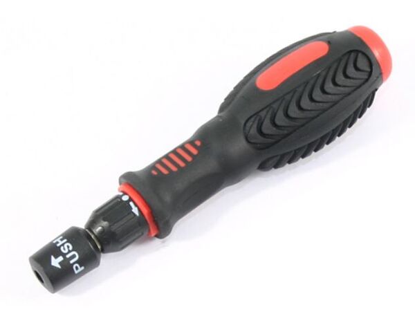 The solid rubber handle features a tightening and loosing ratcheting one-way chuck that also clamps your chosen driver. All housed in a convenient zipped canvas-carrying case.