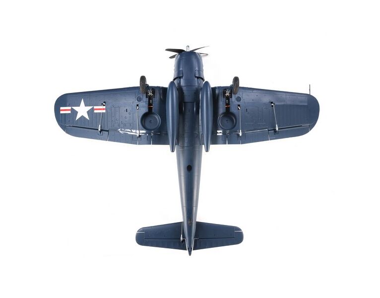 Diese aktualisierte und verbesserte Version der E-flite® F4U-4 Corsair 1,2 m ist das bisher intelligenteste, leistungsstärkste und am einfachsten zu fliegende vollausgestattete Modell des legendären Warbirds! Es ist besser zum Scale- und Sportfliegen ausgestattet, und bietet zusätzlich eine höhere Endgeschwindigkeit und bessere Kunstflugeigenschaften als zuvor – und beinhaltet die optionale SAFE® Select-Technologie, die das Fliegen erleichtert (nur BNF® Basic-Version). Das werkseitig installierte brushless Antriebssystem verfügt über einen 70-A-Spektrum™ Avian™ Smart Lite ESC sowie einen speziell abgestimmten Motor und eine 4-Blatt-Luftschraube. Diese Kombination liefert viel Schub mit einem 3S LiPo-Akku oder mehr Fluggeschwindigkeit und nahezu unbegrenzte vertikale Steigleistung mit einem 4S-Akku. Der ESC kann eine Vielzahl von Echtzeit-Telemetriedaten des Antriebssystem übertragen, darunter Motordrehzahl, Strom, Akkuspannung und mehr – mit Smart- und Nicht-Smart-Akkus – und über kompatible Empfänger (einschließlich AR631) und mit Spektrum AirWare™ ausgestattete Sender. Die leichte und dennoch haltbare, verbundverstärkte und vollständig geformte EPO-Flugzeugzelle verfügt über reichlich Scaledetails, einschließlich Blechstößen und einer Pilotenfigur. Zu den funktionalen Scale-Features gehören werkseitig installierte rotierende Einziehfahrwerksmechaniken mit Fahrwerksbeinverkleidungen sowie funktionsfähige Landeklappen. Dekorbögen für MARINES, NAVY und andere Markierungen dienen der Individualisierung der Werkslackierung. Für die Endmontage ist kein Klebstoff erforderlich – was bedeutet, dass die F4U-4 Corsair 1,2 m in kürzerer Zeit flugbereit ist, als zum Aufladen eines Akkus benötigt wird!